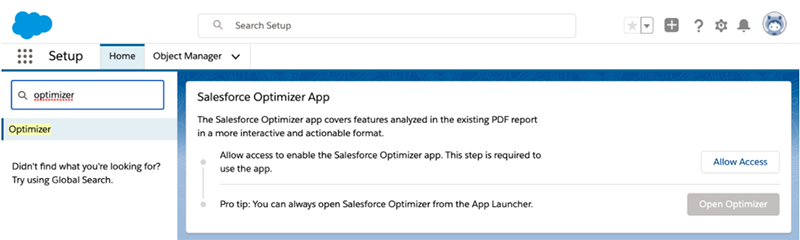 The Salesforce Optimizer Report is your secret weapon. It gives admins an insight into the performance and general health of their Org. Salesforce Optimizer evaluates your Salesforce instance to determine how your company uses Salesforce features, generating concrete recommendations for how you can optimize usage, including ways to simplify customizations, reduce complexity and drive user adoption.